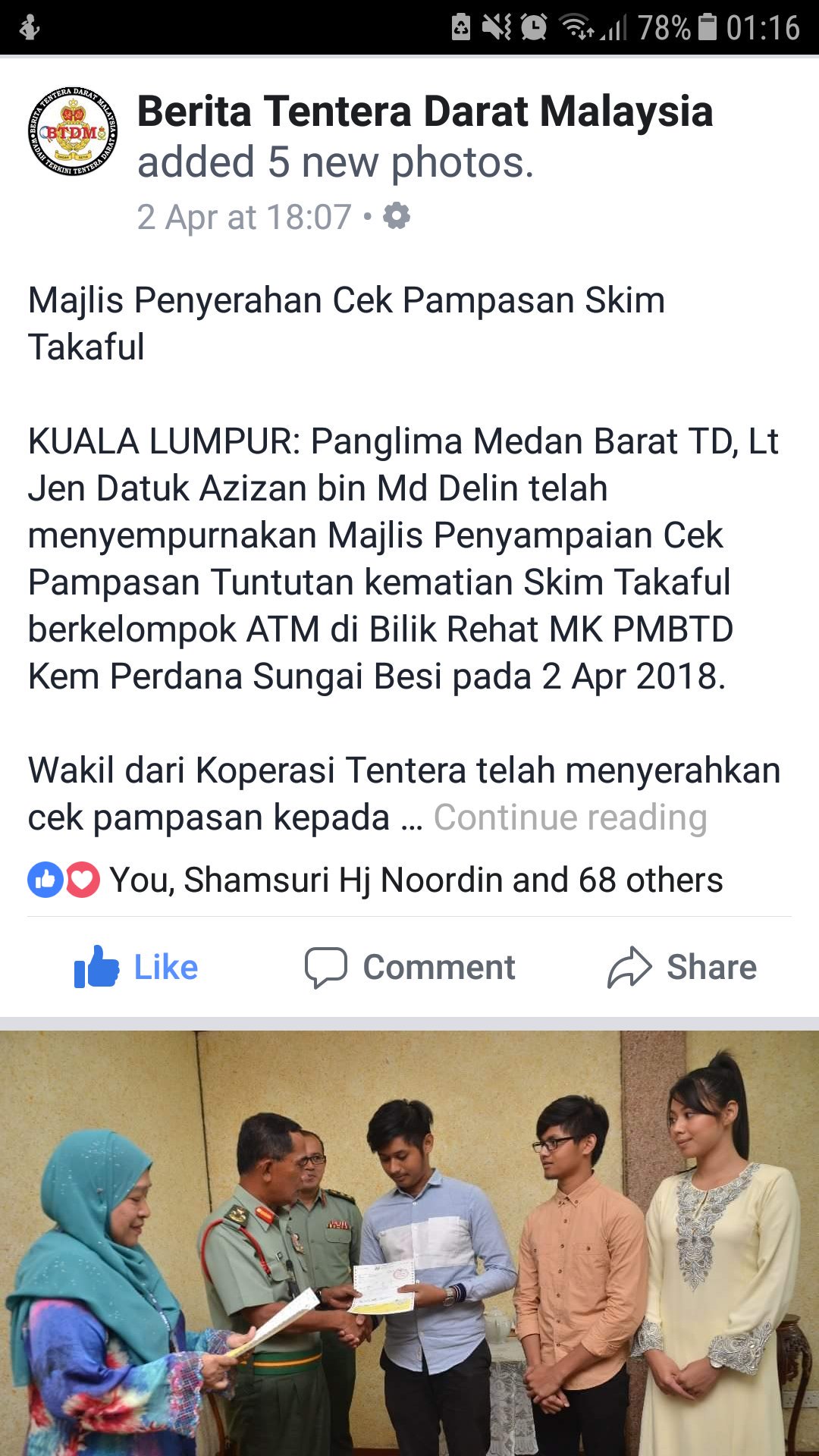 Shamsul Bahary On Twitter Majlis Penyerahan Cek Takaful Insurans Kelompok Koperasi Tentera Kpd Waris Pencarum Di Mk Pmbtd Https T Co Ya9fbjci9t Twitter